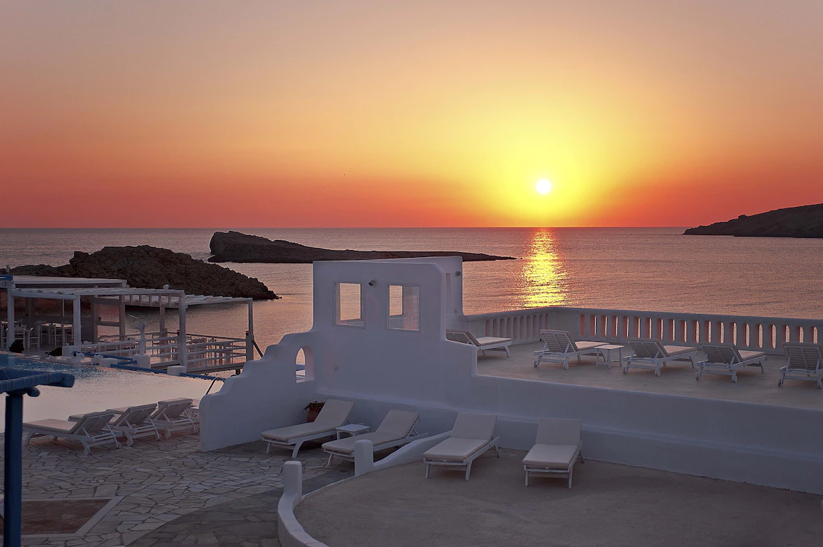 A quiet retreat overlooking a small natural beach, this cozy boutique hotel is the perfect hideaway in Mykonos with everything close by.